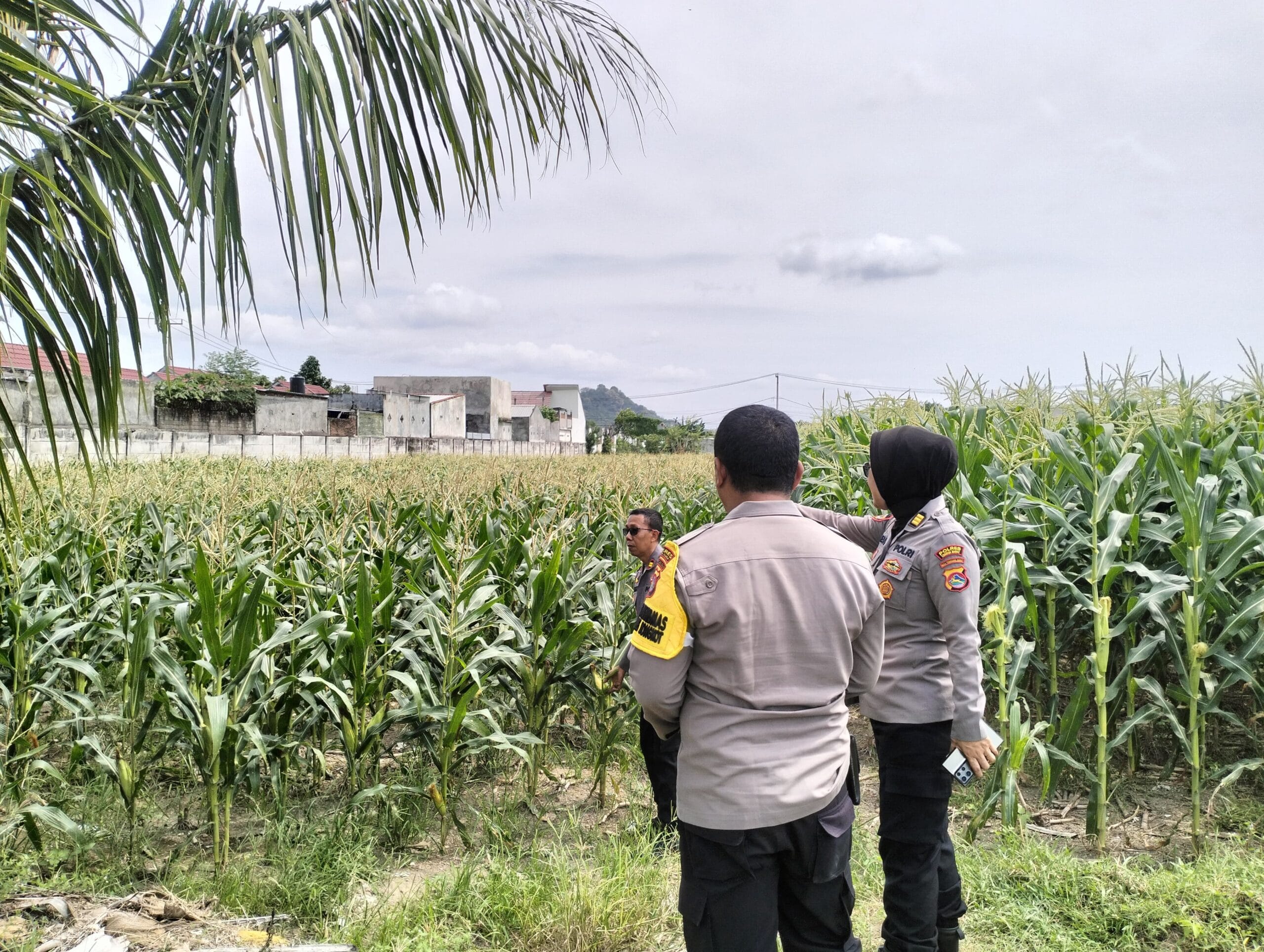 AKP Dewi Komalasari, didampingi oleh Kasat Binmas Polres Lombok Barat, Kapolsek Labuapi, Bhabinkamtibmas Desa Karang Bongkot Labuapi, serta personel Polsek Labuapi, menelusuri langsung area persawahan jagung yang akan segera dipanen.