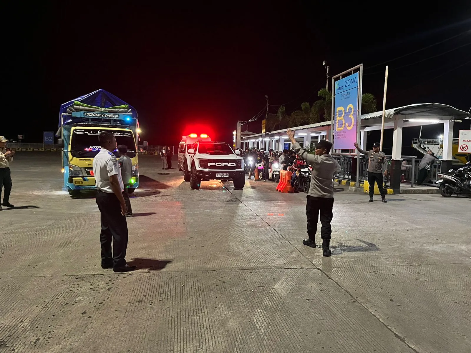 Selain pengecekan administrasi kendaraan, personel kepolisian di lapangan juga secara aktif memberikan himbauan kamtibmas dan keselamatan kepada seluruh penumpang dan pengemudi yang hendak menyeberang. Poin-poin himbauan yang disampaikan mencakup pentingnya menjaga barang bawaan pribadi, mengingat situasi di pelabuhan yang ramai, kewajiban untuk mengikuti antrian pemuatan sesuai dengan tiket, serta kepatuhan terhadap seluruh peraturan keselamatan selama berada di atas kapal.